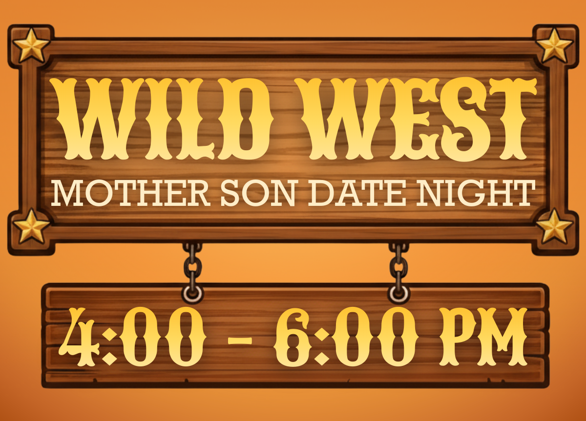 4:00-6:00pm$30.00 Event: Wild West Mother Son Date Night Event date: Saturday, March 7th 4:00 -6:00 PM Price: Residents: $25, Non-residents: $30 Ticket Sales: Resident opens- 1/26, Non-resident opens- 2/2 209 Available 4:00-6:00pm quantity Add to cart